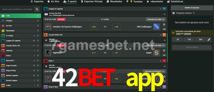 A aposta 42bet app oferece aos jogadores a experiência mais conveniente de apostas em eSports!